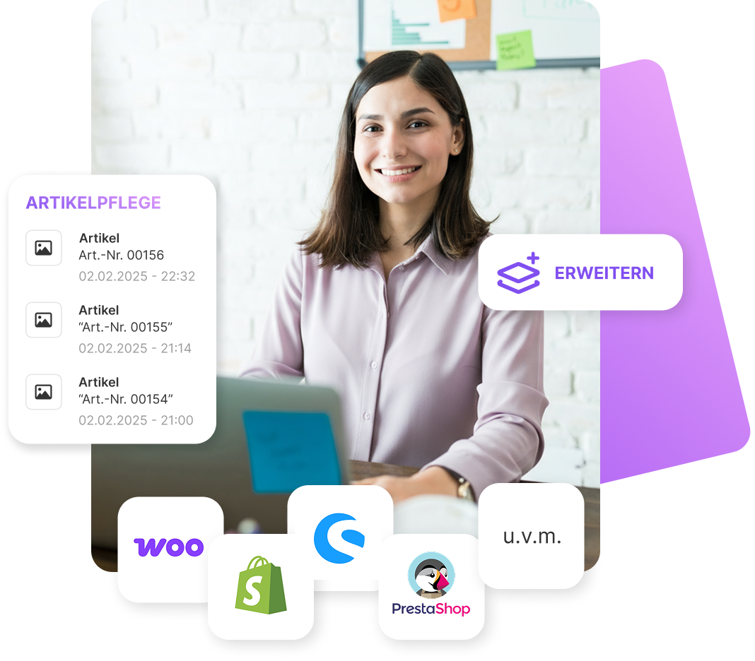 Entwickle deinen E-Commerce ganz nach deinen Vorstellungen, indem du die Software durch spezielle Funktionalitäten und angebundene Drittsysteme flexibel erweiterst.