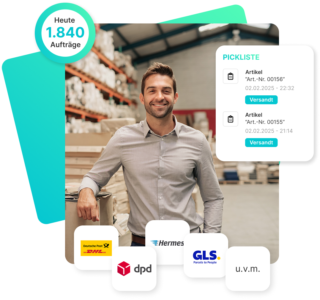 Erstelle wegeoptimierte Picklisten und Versandetiketten vollautomatisch.