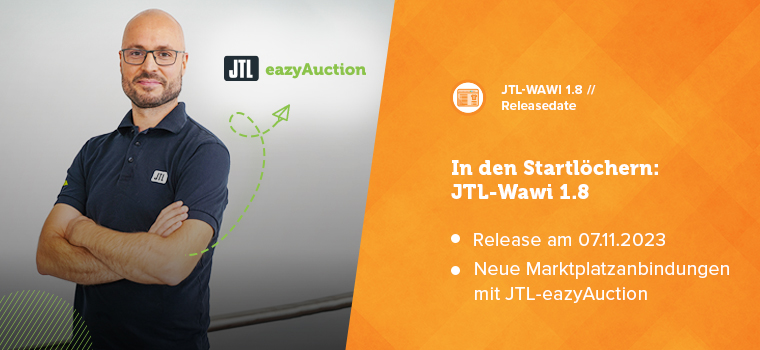 Die Stable-Version von JTL-Wawi 1.8 steht in den Startlöchern. Ab dem 07. November 2023 wird sie zum Download bereitstehen. Die Warenwirtschaft hat u.a. Neuerungen bei den Bestellvorschlägen und JTL-Workflows im Gepäck. Das größte Highlight ist aber zweifellos die Anbindung neuer Marktplätze in JTL-eazyAuction – darunter Kaufland (Deutschland, Tschechien, Slowakei), Otto.de, voelkner und MediaMarktSaturn. Im Interview