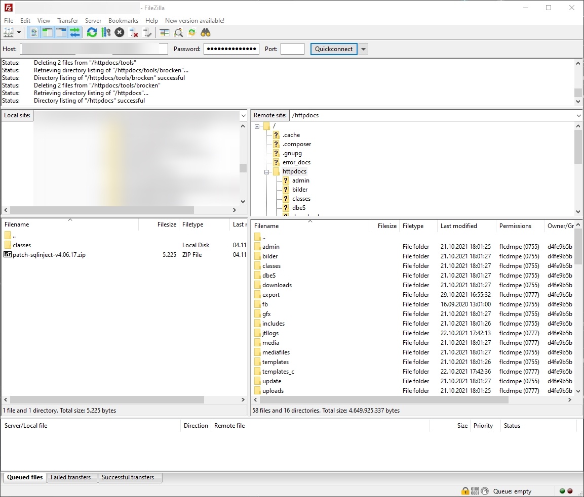 Grund dieser Empfehlung: In den von uns gesichteten PHP-Backdoors wurde konkret der Inhalt der Datenbanktabelle tadminlogin inkl. Passwort-Hashes abgerufen.
