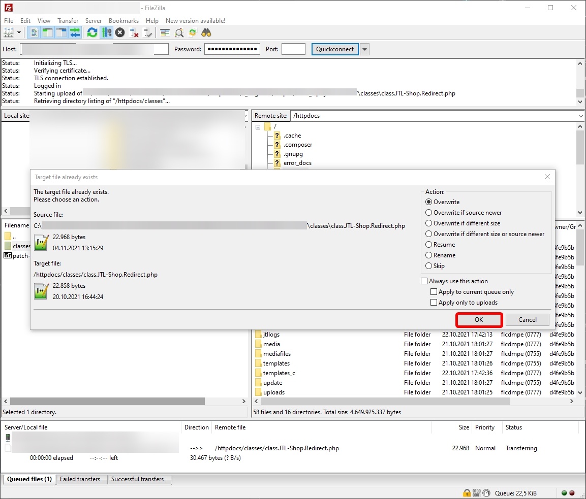 Um den Patch manuell in Ihrer JTL-Shop-Version 4.06.17 einzuspielen, benötigen Sie ein Programm wie FileZilla, das Sie z. B. hier downloaden können.