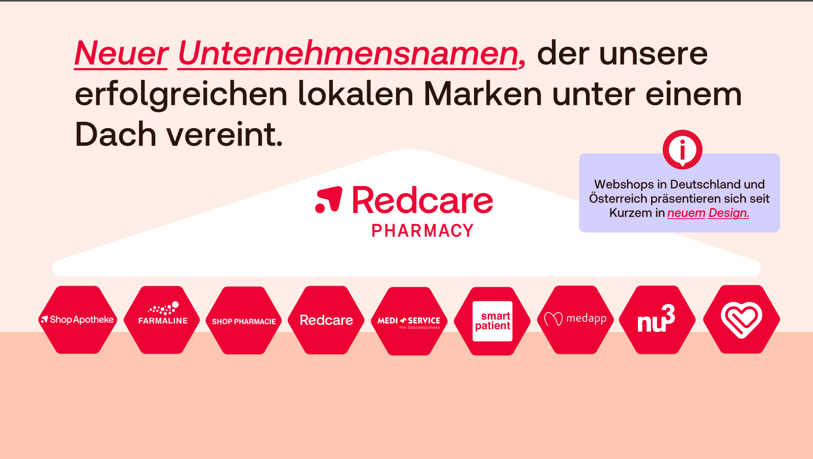 Ursprünglich im Jahr 2001 gegründet, ist Redcare Pharmacy (bisher bekannt als Shop Apotheke Europe) heute die führende Online-Apotheke in Europa und aktuell in sieben Ländern aktiv: Deutschland, Österreich, Frankreich, Belgien, Italien, den Niederlanden und der Schweiz.