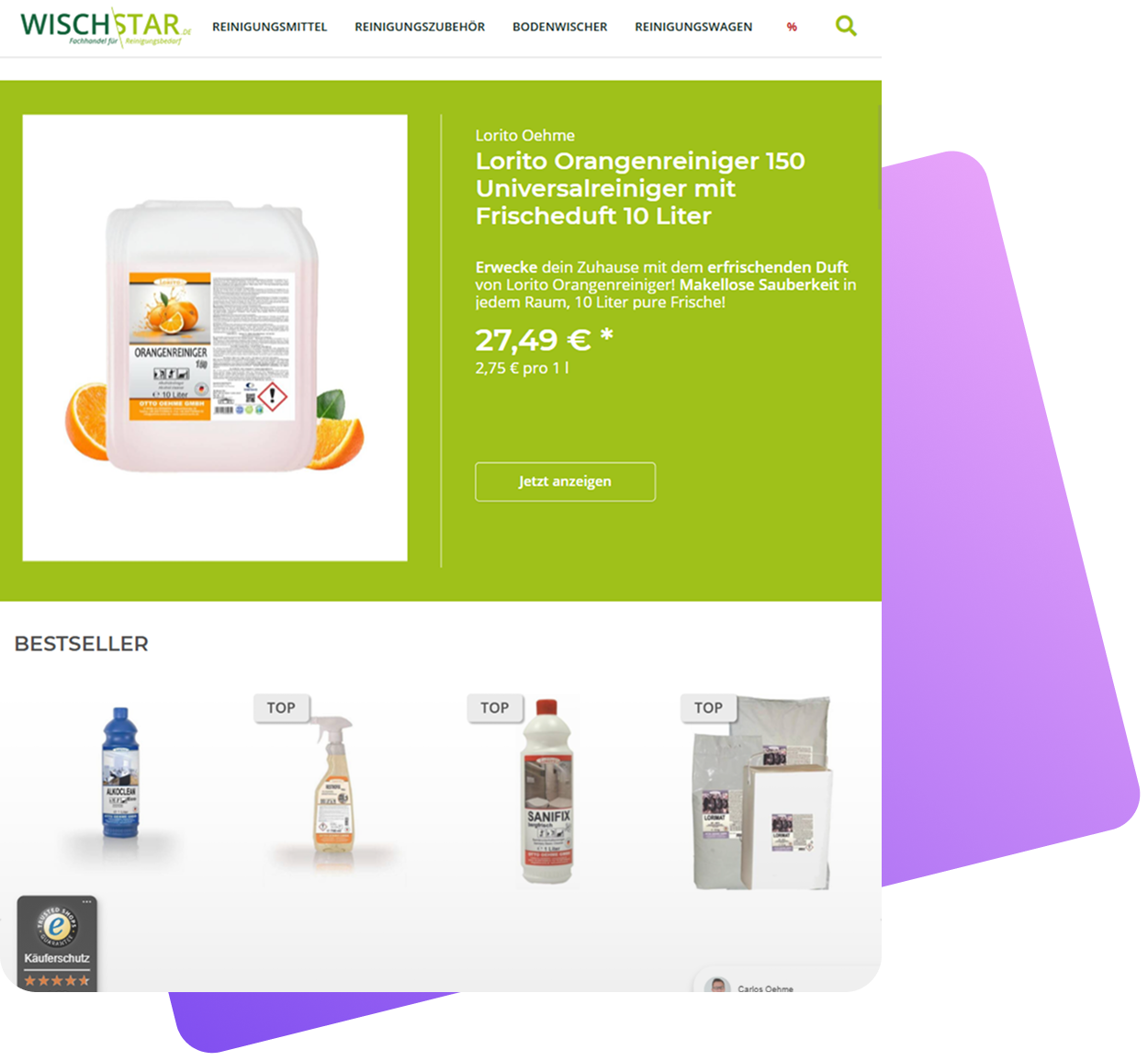 Seit über 90 Jahren sind wir Hersteller von professionellen Reinigungsmitteln. 2012 bietet sich uns die Chance, den Onlineshop wisch-star.de von einem Kunden zu übernehmen.