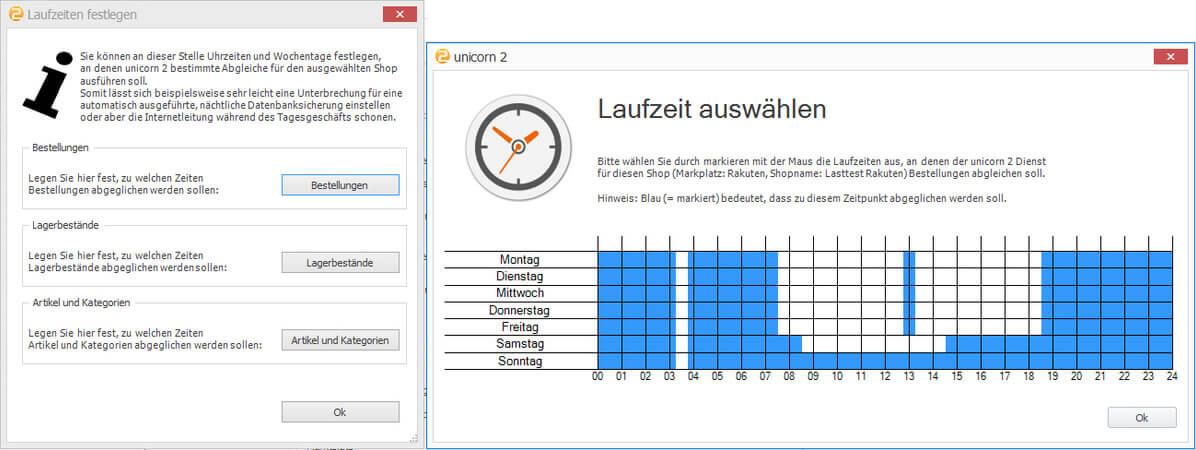 Über entsprechende Einstellungen könnt ihr die Zeiten für die jeweilig durchzuführenden Abgleiche genau einstellen. So könnt ihr beispielsweise erreichen, dass die Bandbreite eurer Internetverbindung während des Tagesgeschäftes geschont wird oder eine automatische Unterbrechung für die nächtliche Datenbanksicherung erfolgt.