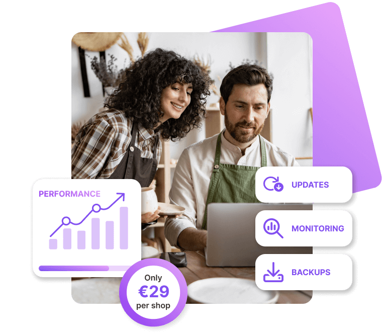 SSL certificate, daily backups and active protection against attacks protect your data and sales.